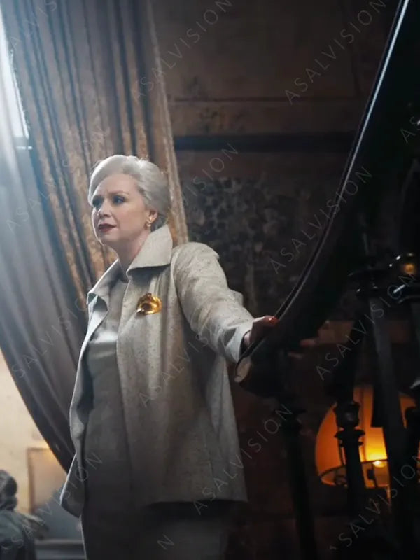Larissa Weems Wednesday Gwendoline Christie Off-White Printed Jacket For Women's